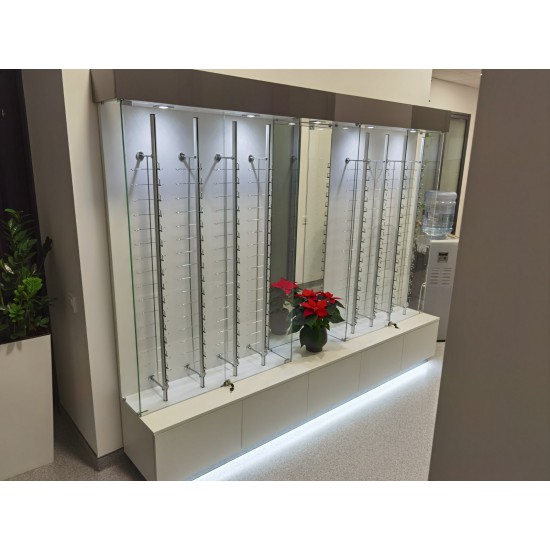 wykonana dla sklepu optyki, ale może być z połkami i w innych kolorach.
