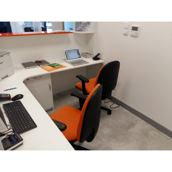 Lada recepcyjna Corner z pomarańczowymi panelami