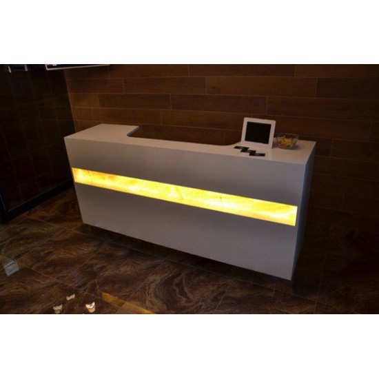 Ten model doskonale będzie pasować do recepcji, na przykład, w salonie urody Może być wykonany z błyszczącego MDF lub matowej płyty wiórowej.