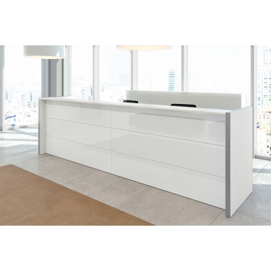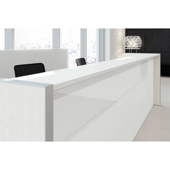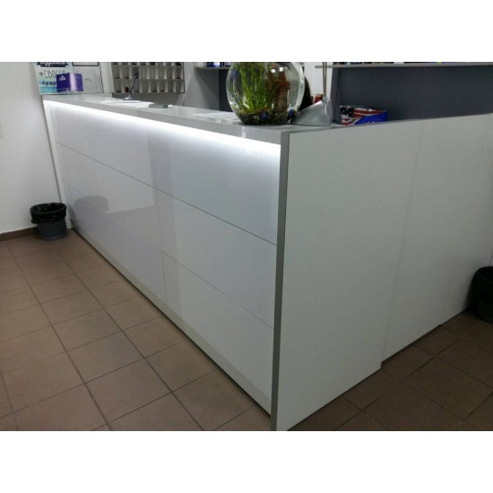 Lada recepcyjna dla dwóch pracowników biała, ale na Państwa życzenie możemy zmienić kolor indywidualnie.
