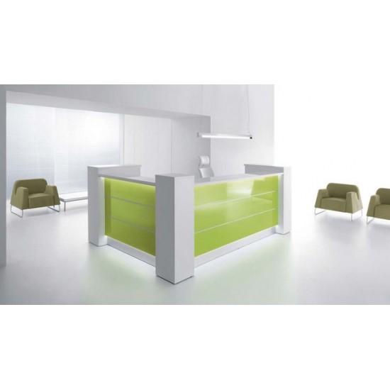 Recepcja stała się niezbędną częścią biur, sklepów, salonów i klinik, hoteli i innych placówek. Ten rodzaj mebli jest bardzo wygodny i funkcjonalny. Oferujemy ladę w nowoczesnym projektowaniu i przyjemnego biało - seledynowego koloru światło schematu kolorów.